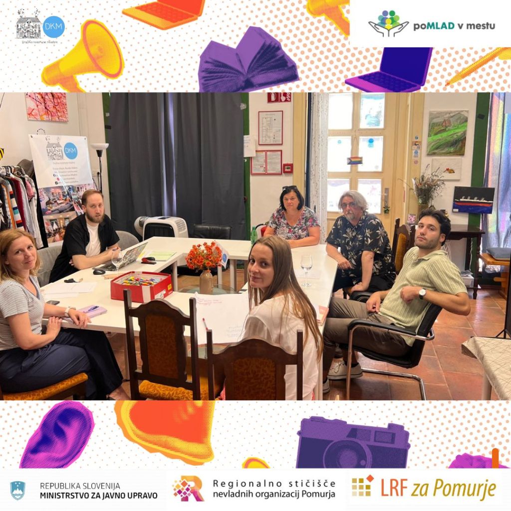Prva fokusna skupina je potekala v organizaciji Društva kreativne mladine v sodelovanju z MIKK Murska Sobota in Mestno občino Murska Sobota. Fokusna skupina je bila namenjena predstavitvi projekta, njegovih ciljev in načrtovanih aktivnosti ter vzpostavitvi sodelovanja med ključnimi akterji mladinskega dela v lokalnem okolju. Udeležencem smo podrobneje predstavili financerja projekta, pri čemer smo izpostavili, da je storitev sofinancirana v okviru finančne spodbude za čezsektorsko reševanje izzivov preko Regionalnega stičišča NVO Pomurja, ki ga financira Sklad za razvoj NVO Ministrstva za javno upravo. Našemu vabilu na fokusno skupino mladinskih organizacij in organizacij, ki delajo z mladimi so se odzvali: Klub prekmurskih študentov, Društvo prijateljev mladine Murska Sobota, Center za socialno delo Pomurje in Ljudska univerza Murska Sobota.