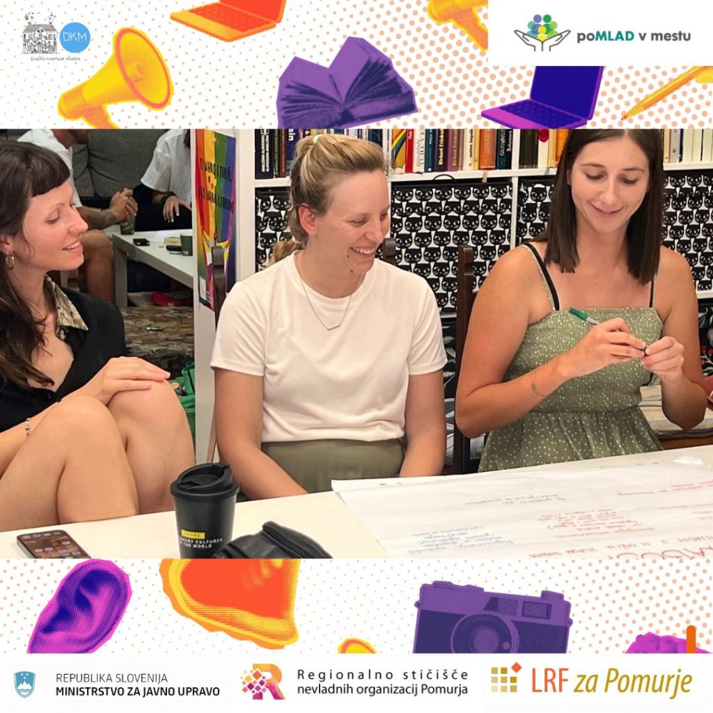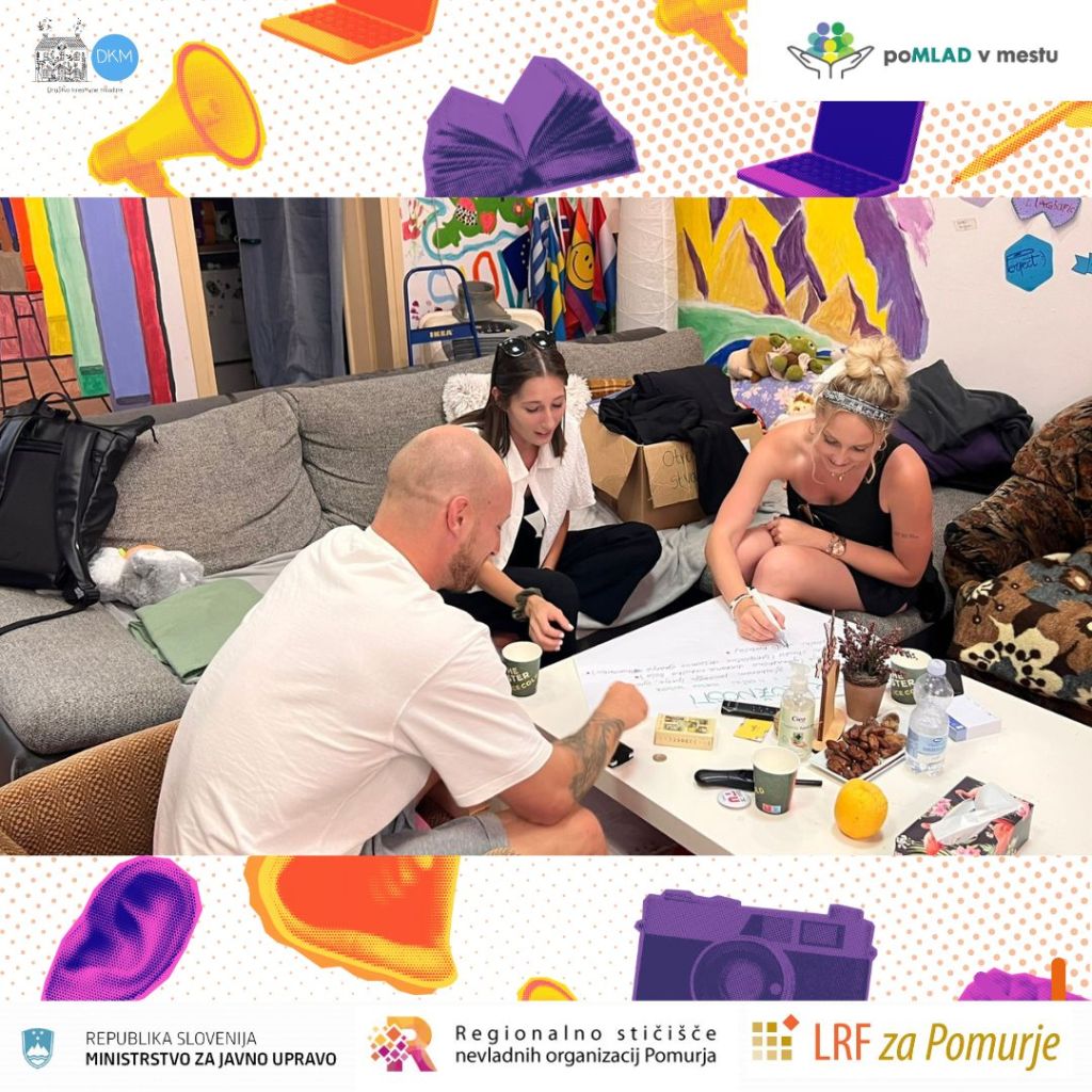 Druga fokusna skupina je potekala v organizaciji Društva kreativne mladine v sodelovanju z MIKK Murska Sobota in Mestno občino Murska Sobota. Fokusna skupina je bila namenjena predstavitvi projekta, njegovih ciljev in načrtovanih aktivnosti ter vzpostavitvi sodelovanja med mladimi v lokalnem okolju. Udeležencem smo podrobneje predstavili financerja projekta, pri čemer smo izpostavili, da je storitev sofinancirana v okviru finančne spodbude za čezsektorsko reševanje izzivov preko Regionalnega stičišča NVO Pomurja, ki ga financira Sklad za razvoj NVO Ministrstva za javno upravo. Našemu vabilu na fokusno skupino z mladimi se je odzvalo 15 mladih iz lokalnega in regijskega okolja.