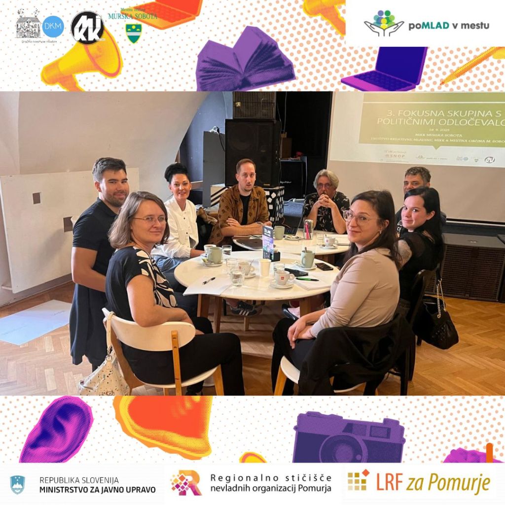 V Murski Soboti je potekala tretja fokusna skupina, ki so jo organizirali MIKK Murska Sobota v sodelovanju z Društvom kreativne mladine in Mestno občino Murska Sobota. Tokratno srečanje je bilo namenjeno predvsem predstavitvi projekta in njegovih ciljev političnim odločevalcem, ki imajo pomembno vlogo pri oblikovanju pogojev za življenje mladih v mestu. Na začetku je bil predstavljen financer projekta, ki s podporo Regionalnega stičišča NVO Pomurja in Sklada za razvoj NVO Ministrstva za javno upravo omogoča čezsektorsko povezovanje ter spodbuja trajnejše rešitve na področju mladinskega dela.