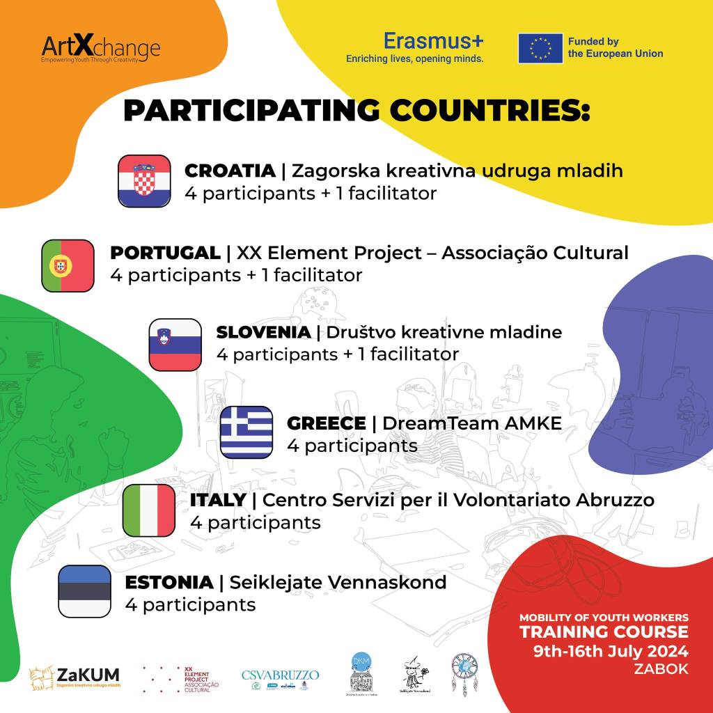 V mesecu juliju gremo na Hrvaško! Društvo Kreativne Mladine smo partner v projektu ArtXchange: Empowering Youth Through Creativity. Vodilni partner Zagorska kreativna udruga mladih bo v mesecu juliju izvedla training course, kjer bomo sodelovali z enim trenerjem in štirimi udeleženci.