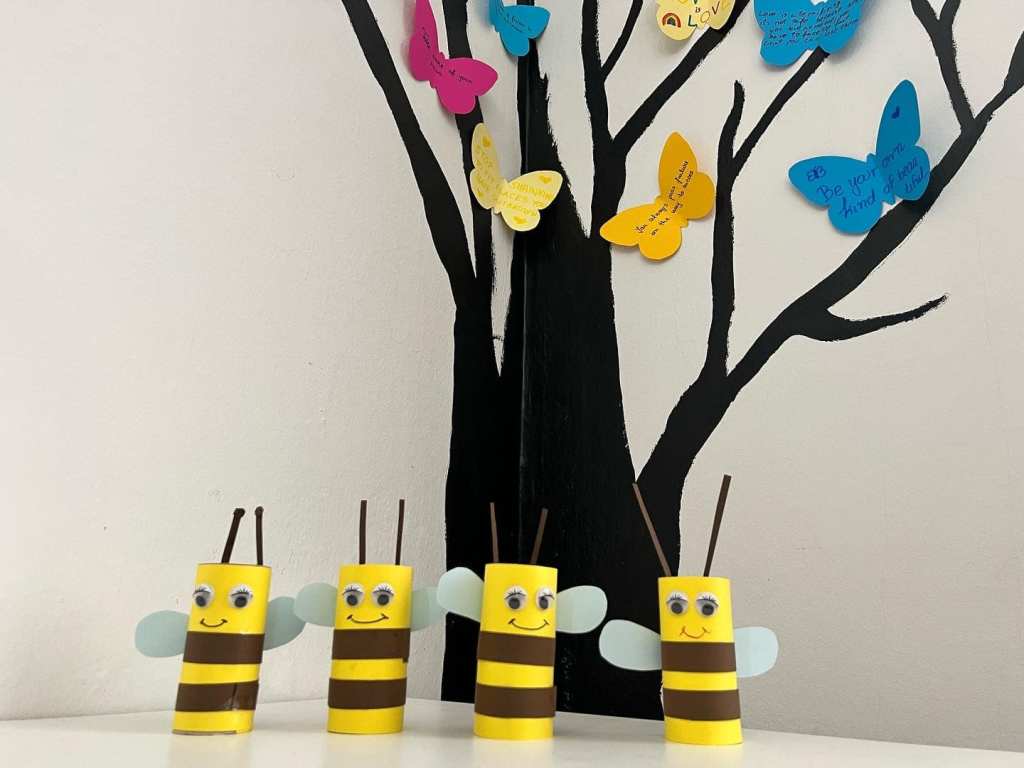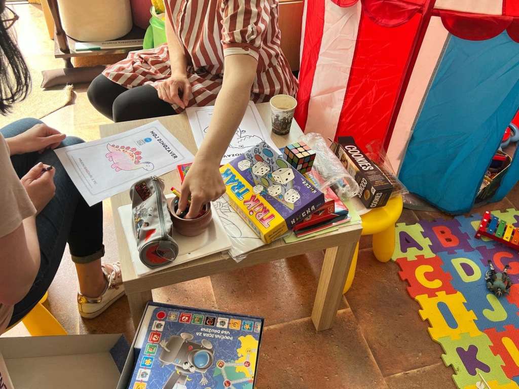 Utrinki iz današnje čajanke za starše in igralnice za otroke. Starši so uživali ob skodelici pozitivnega čaja, otroci pa so uživali ob številnih igrah, igračah in kreativni delavnici, kjer smo izdelovali čebelice ob Svetovnem dnevu čebel