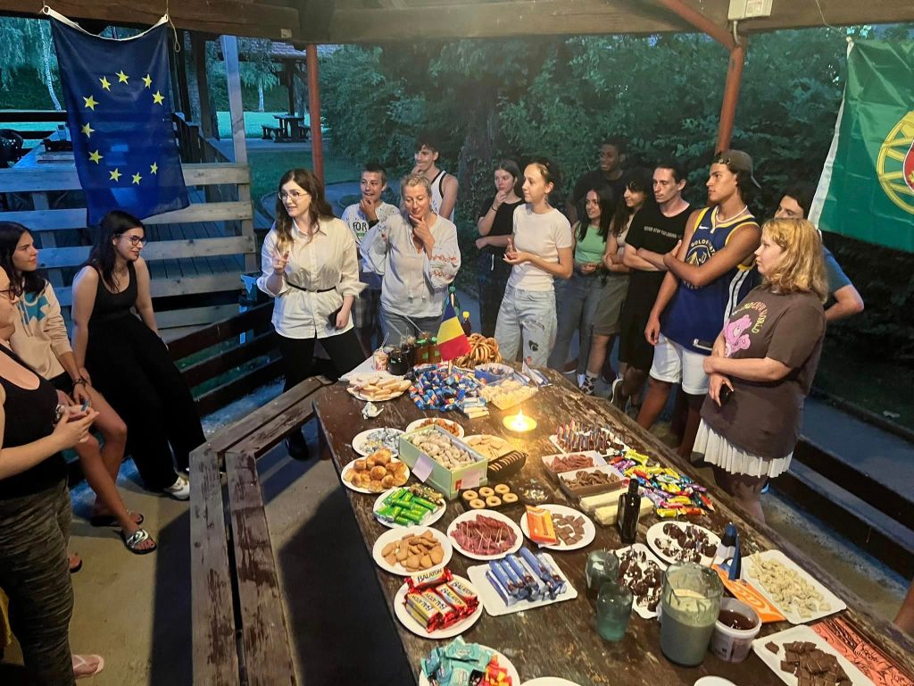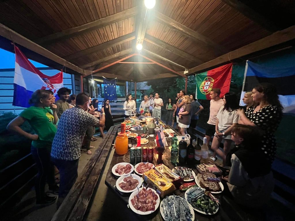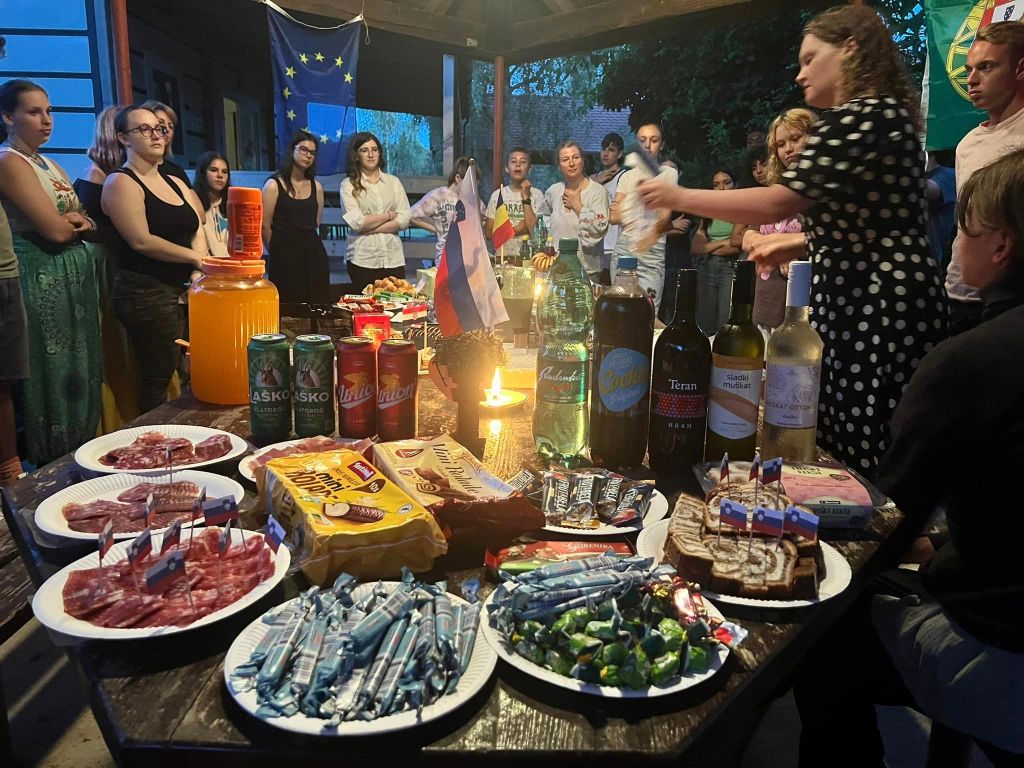 igre, spoznavanje in utrjevanje imen, uvod v tematiko mladinske izmenjave in zvečer smo pripravili mednarodno kulinarično tržnico, kjer smo spoznali tipične prigrizke sodelujočih držav.