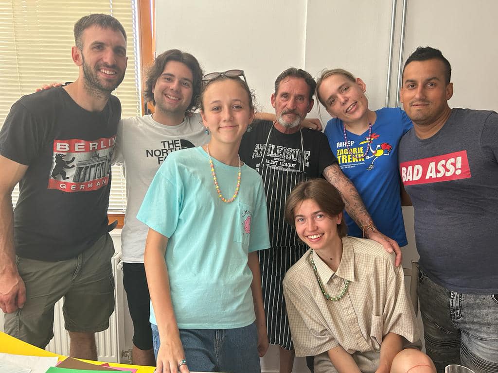 V ponedeljek smo v Murski Soboti v sklopu mladinske izmenjave “CulSolidArt” pripravili Erasmus+ dan za spremembe. Obiskali smo Hišo Sadeži družbe Murska Sobota, Krizni center za mlade (CSD Pomurje), MOZAIK – Društvo za socialno vključenost (Zavetišče za brezdomne osebe Murska Sobota, Dom starejših Rakičan (Enota Diana in Murska Sobota) in Dnevno sobo in informacijsko točko za mlade kreativce. Dan je bil namenjen spoznavanju solidarnosti. V Hiši Sadeži družbe so udeleženci porisali zid, v kriznem centru so spoznali njihovo delovanje in namen, udeleženci so bili presenečeni, saj kaj podobnega v svojih državah nimajo. V Zavetišču za brezdomne osebe so udeleženci pomagali pri pripravi kosila, izdelovali zapestnice in se družili z uporabniki. V Dnevni sobi oz. našem mladinskem centru pa je Društvo Fršlus pripravilo delavnico o ozaveščanju meseca ponosa invalidov, ki ga obeležujemo v mesecu juliju.