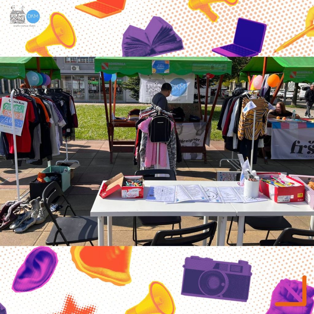 Predstavili smo se na Trgu kulture, kjer smo v sklopu Rikkfest-a – Festivala romske in kvir kulture sodelovali s stojnico, izmenjevalnico oblačil, kreativnim kotičkom za mladino ter fotografsko razstavo “Ljudje in kraji”. Dogodek je organiziralo Društvo Fršlus v okviru programa Evropske solidarnostne enote in nas je spomnil na pomen solidarnosti, raznolikosti in vključevanja v naši skupnosti.