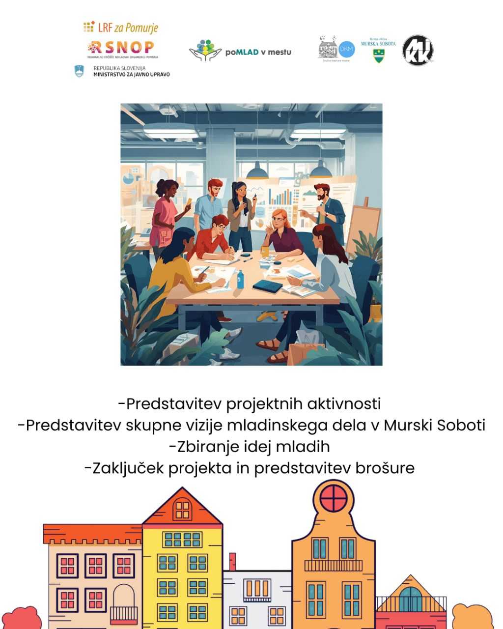 Društvo kreativne mladine se pridružuje dogodku v sklopu projekta poMLAD v mestu, ki ga izvajamo skupaj z MIKK Murska Sobota in Mestna občina Murska Sobota. Na dogodku bomo predstavili projektne aktivnosti, skupno vizijo mladinskega dela v Murski Soboti, zbrali ideje mladih ter zaključili projekt s predstavitvijo brošure.