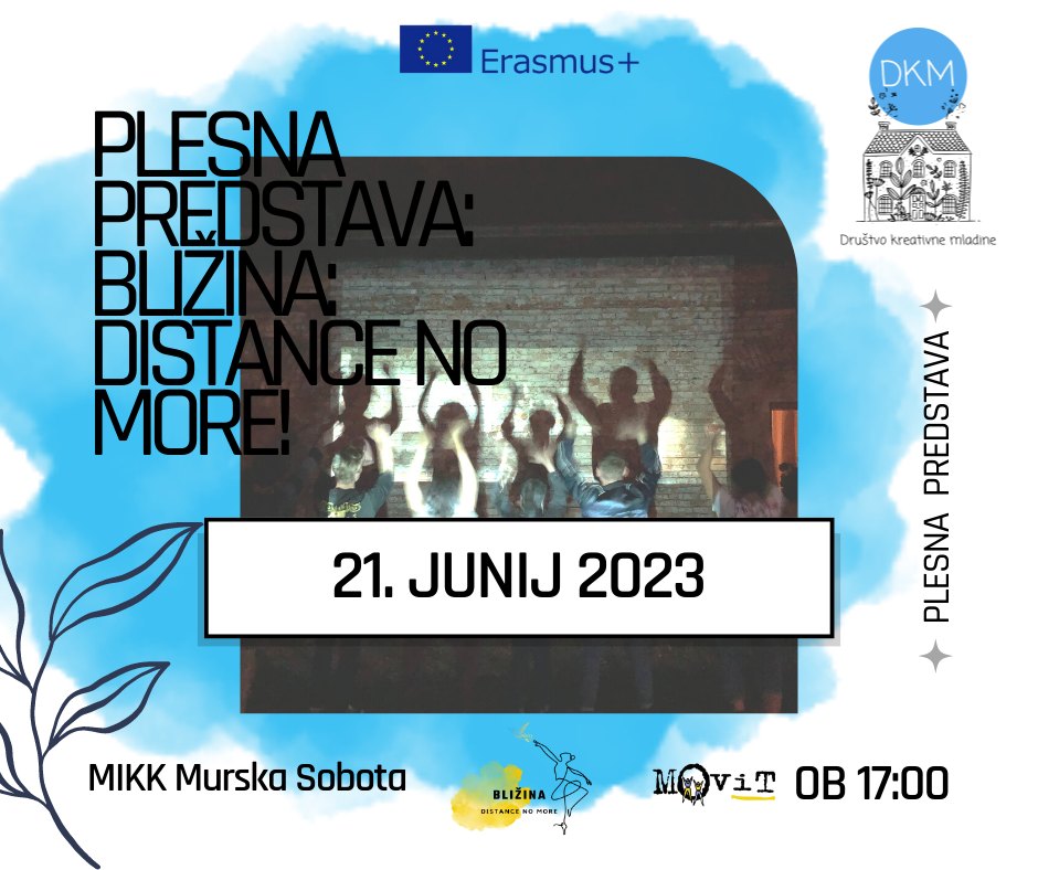 V sredo 21. junija 2023 vas ob 17:00 vabimo v prostore MIKK Murska Sobota na zaključno predstavo mladinske izmenjave “Bližina-distance no more!”. Povabi prijatelje in nas pridi pogledat ter se podruži z mladimi iz 8 različnih držav.