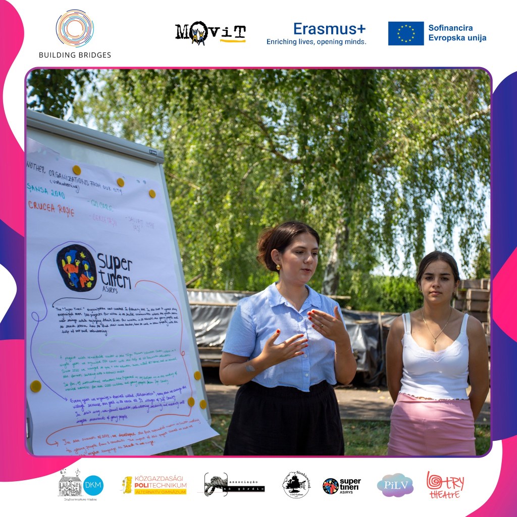 se povežete z ljudmi iz vse Evrope in se na neformalen način učite o kulturi, raznolikosti, sprejemanju, manjšinah in še veliko več. Eden od takšnih projektov je potekal v Sloveniji z naslovom »Gradimo mostove«. Kot pove že ime, je bil cilj projekta zbližati ljudi preko kulture, solidarnosti in umetnosti.